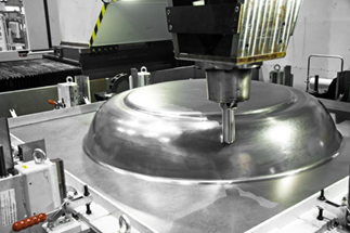 Das Teilprojekt T3 "Smart Forming" zielt auf die wachsende Produktindividualisierung und die damit verbundenen sinkenden Losgrößen bzw. absoluten Produktionszahlen von Blechbauteilen. Bisher etablierte konventionelle Prozessketten der Blechumformung (Presswerk) werden für sinkende Stückzahlen und neue (Leichtbau-) Werkstoffe zunehmend unattraktiv. Als Lösungsansatz werden aktuell im Projekt Grundlagen für eine intelligente Prozessführung erarbeitet, die verbunden mit stückzahloptimierten Technologien und einem minimierten Invest an Formspeichern (z.B. Umformwerkzeuge) die Effizienz der Fertigungsprozesse für blechbasierte Bauteile zu steigern helfen. Ein Beispiel ist die Anwendung der inkrementellen Umformung für Großbauteile aus Blech (siehe Bild), für die eine klassische Werkzeug-gebundene Fertigung deutlich zu ineffizient ist.