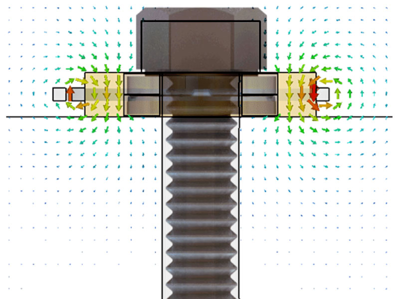 In einer Vielzahl von technischen Produkten in den Bereichen Mobilität, Energieerzeugung und mobile Arbeitsmaschinen sind Optimierungen zur Effizienzsteigerung und Sicherheitserhöhung durch kontinuierliche Bauteilüberwachung stetige Ziele. Besonders zentrale maschinenbautechnische Komponenten wie Schraubverbindungen stellen herausfordernde Anforderungen hinsichtlich der praktischen Umsetzbarkeit einer aktiven Zustandsüberwachung. Hintergrund dieser Aufgabenstellung ist, dass derzeit der optimale elastische Bereich von Schraubverbinden über das benötigte Drehmoment detektiert wird, wie es z.B. mit einem Drehmomentschlüssel erfolgt. Das Drehmoment ändert sich dabei auch in Abhängigkeit der Reibung beim Anziehen der Schraube, so dass das benötigte Drehmoment nur ein indirekter Nachweis für benötigte Vorspannkraft der Schraube darstellt. Zudem ist eine nachträgliche Kontrolle der Betriebskraft in der Schraubverbindung nicht möglich.