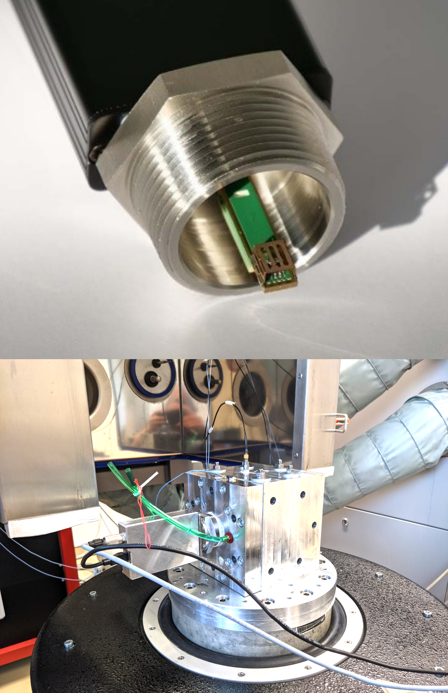 Zur präzisen Regelung von Hydraulik-Achsen von Bearbeitungsmaschinen sollen die Voraussetzungen zur On-Line-Messung der aktuellen Parameter der Hydraulikflüssigkeit durch einen MEMS-Ölqualitätssensor geschaffen werden. Dafür wird ein bereits vorhandener resonanter MEMS-basierter Fluidsensor, der Viskosität, Dichte, Temperatur und Dielektrizitätszahl der Flüssigkeit misst, für den genannten Einsatz qualifiziert. Das Hauptziel des Projektes bestand darin, eine praktische Implementierung der Sensoren an einem applikationsnahen Demonstrationsarbeitsplatz vorzunehmen, um damit ein breites Anwendungsfeld zu eröffnen. Dafür wurde ein universeller Versuchsstand, an welchem Einstellung zur Strömung, des Druckes sowie der Temperatur von hydraulischen Flüssigkeiten vorgenommen werden und variiert werden können, in Betrieb genommen. Dieser erlaubt die parallele Aufzeichnung des Druckes, des Volumenstromes, der Fluidtemperatur sowie der Referenzviskosität und –dichte. Der Bauraum der Sensorelektronik sowie die ölseitige Anbindung der Messzelle wurde überarbeitet und mit einer geeigneten Aufbau- und Verbindungstechnologie verkleinert. Applikationsspezifische Untersuchungen zum Einfluss von Vibrationen, Temperaturzyklen sowie der Reproduzierbarkeit der Messergebnisse zeigen die außerordentliche Robustheit des MEMS-basierten Wandlerprinzips bei gleichzeitig hoher Messpräzision.
