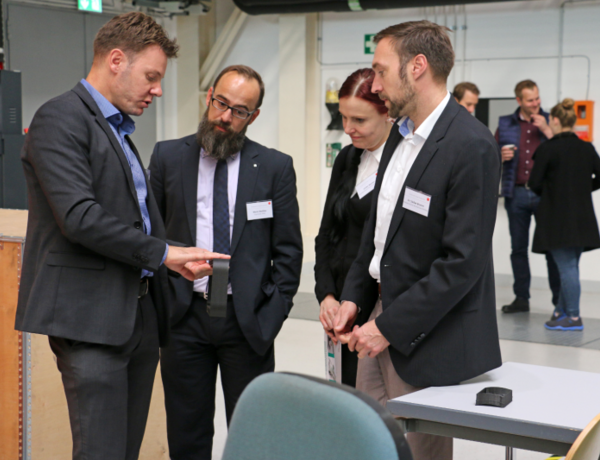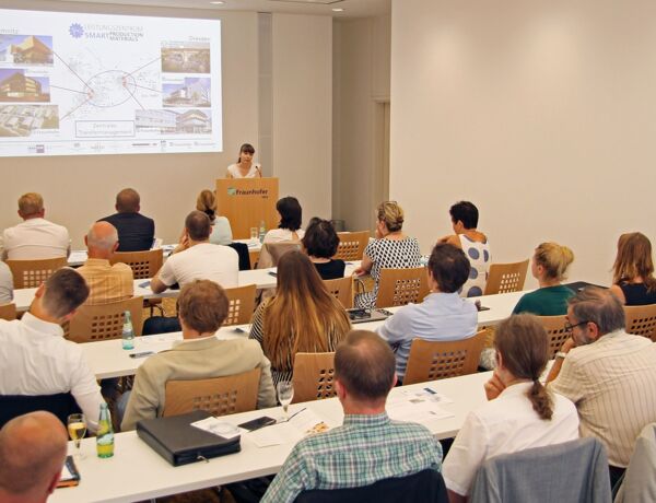 Der konkrete Austausch zwischen Forschung und Anwendung wurde dabei auch durch ausgewählte Unternehmenspräsentationen unterstützt. So gewährte die BMW Group Einblick in ihre Aktivitäten und Pläne im Bereich Additive Manufacturing – einem Kernthema mehrerer aktueller Projekte des Leistungszentrums. Abschließend konnten die Teilnehmer im Rahmen einer Institutsführung einige Demonstratoren der für das Leistungszentrum relevanten Themenfelder, wie z. B. den SEAM-Drucker, die Silberhummel®, den Leichtbau-Ski-Roller oder die Anlage der TU Chemnitz zum plasmaelektrolytischen Polieren, besichtigen.