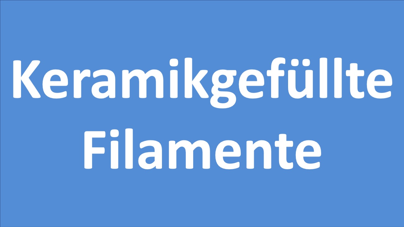 - Keramikgefüllte Filamente (Al2O3, ZrO2, SiC, LTCC, Si3N4/MoSi2, SiCf/SiC, Cordierit, WC/Co, Porzellan, PA/PZT)
